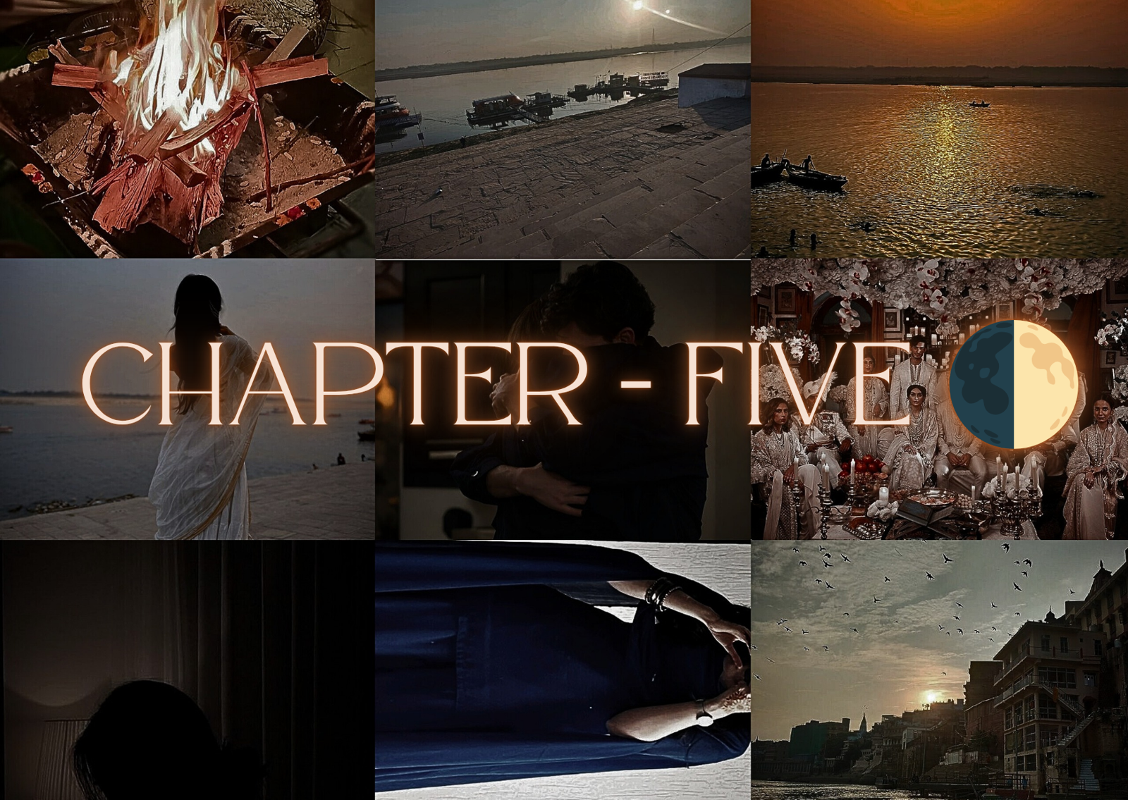 Then, in a blink, a push-sharp, thoughtless-and the thaal slipped. Aditya's hand went out, but the plate tipped, the vermilion taking flight like red dust in a sudden wind. It landed everywhere: on our clothes, across our faces, bright and obscene against white kurta and pale skin.